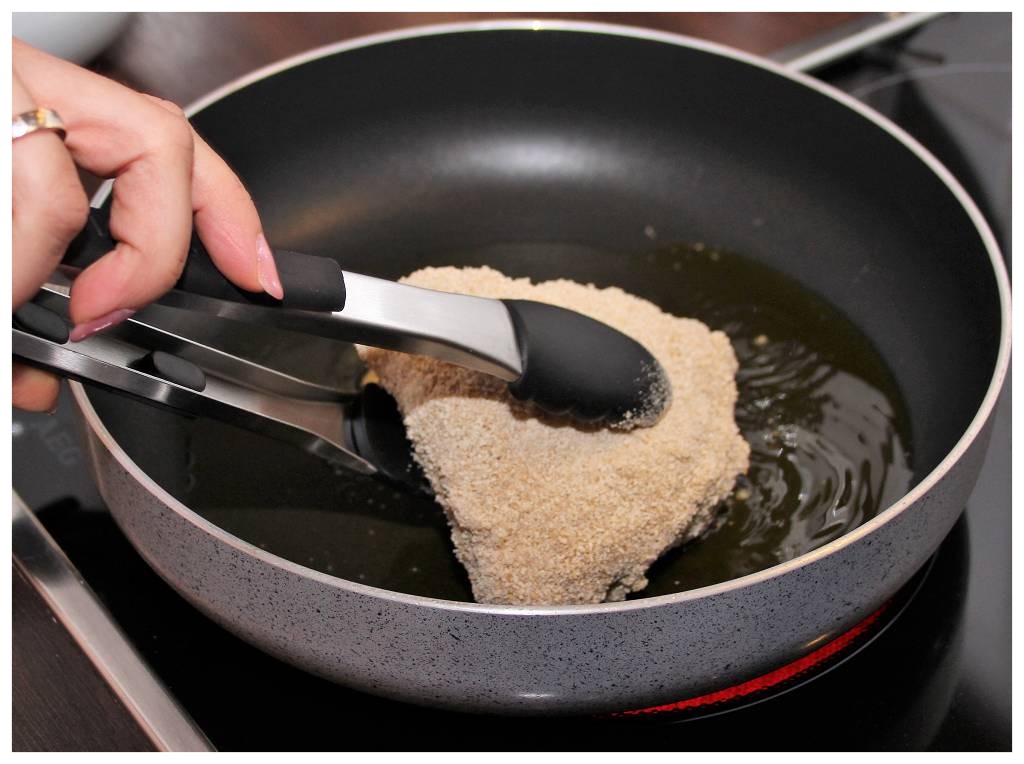 Die vier Eier in einer Schüssel aufschlagen und vermengen. Das Paniermehl in eine weitere Schüssel geben. Die Cordon-Bleus erst im Ei und anschließend im Paniermehl wälzen. Das Ganze einmal wiederholen. Anschließend das Olivenöl in einer Pfanne sehr heiß werden lassen. Die Cordon Bleus kurz von allen Seiten anbraten, so dass die Panade goldbraun wird.