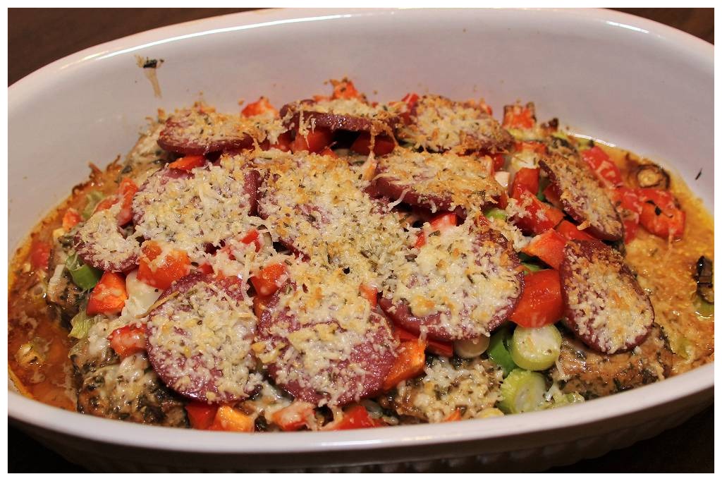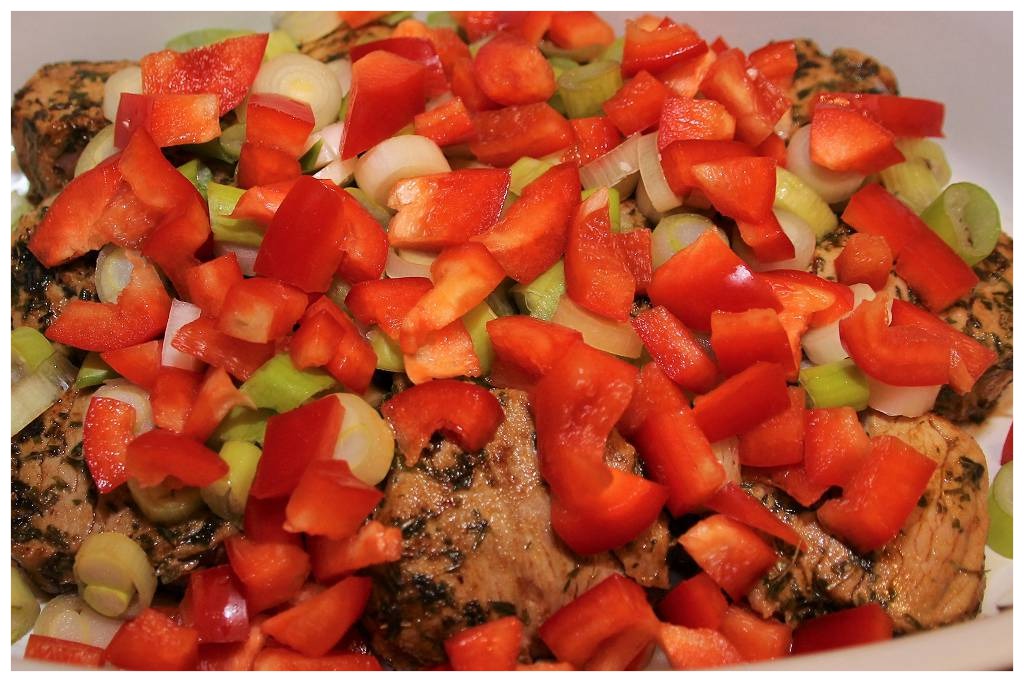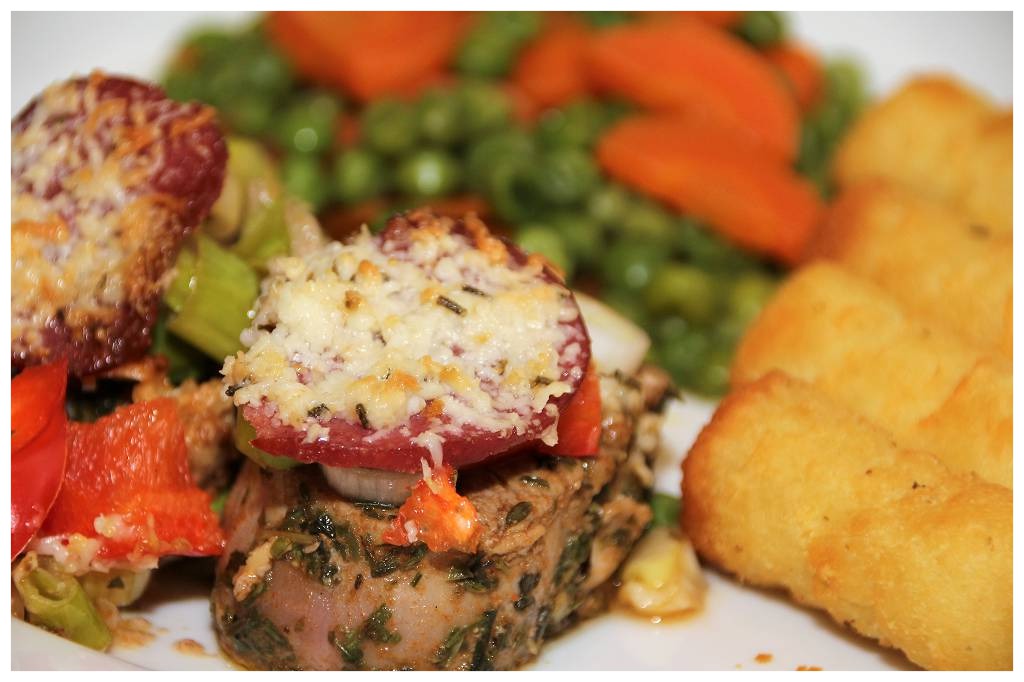 Das Gericht dann mit noch etwas Olivenöl beträufeln und für ca. 20-25 Minuten (je nach Dicke der Medaillons) bei 170 Grad (Umluft) im vorgeheizten Backofen fertig überbacken. Dazu passen beispielsweise Kroketten und Erbsen-Möhren-Gemüse.